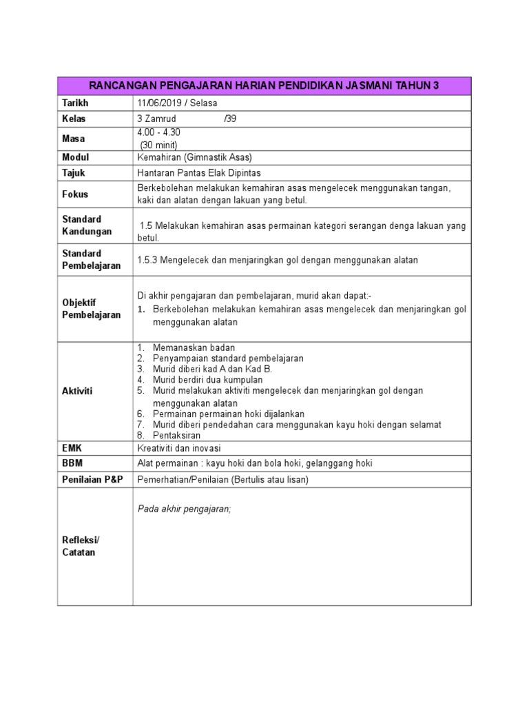 Rph Pendidikan Jasmani Tahun 6 Gurubesar My